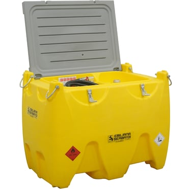 Para llevar el combustible exactamente a donde se necesita, el Speedy Tank ofrece una solución dinámica. Se trata de un remolque con plataforma desmontable, específicamente homologado para el transporte de combustibles por carretera. Está diseñado para la fijación perfecta de los tanques transportables de Emiliana Serbatoi, permitiendo una movilidad completa en campo.